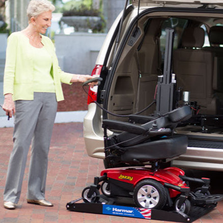 - Carries virtually all standard power chairs and scooters-- no mobility device modifications required