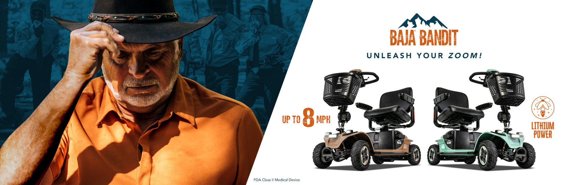 The Baja Bandit is here to push the limits. It’s rugged. It’s fast. It’s uncompromising as a conduit for outdoor adventure. Exactly how Baja Mobility is defined.