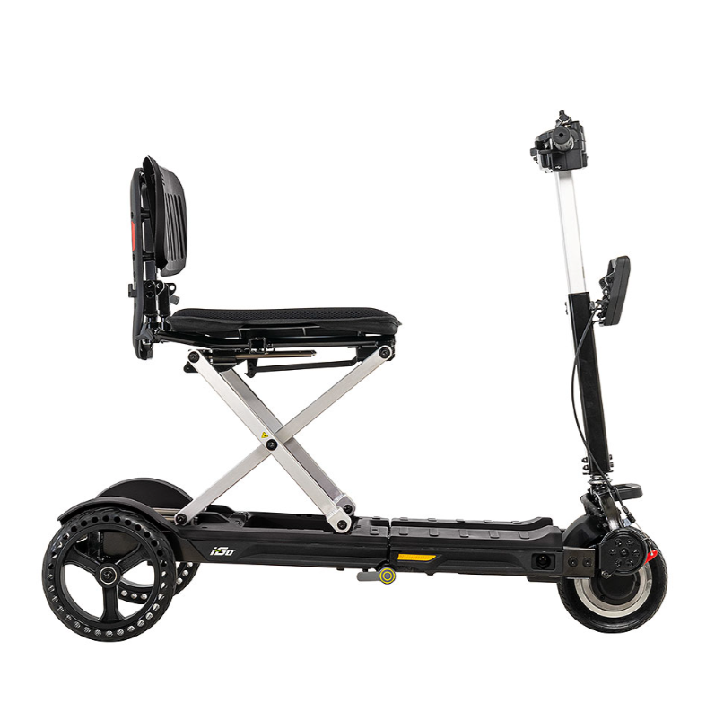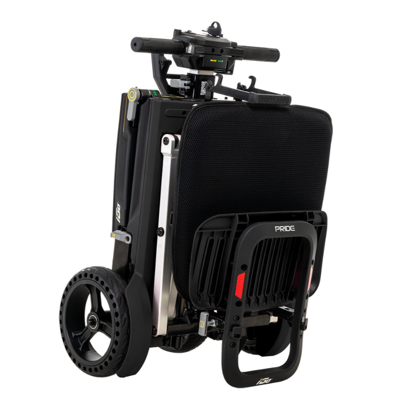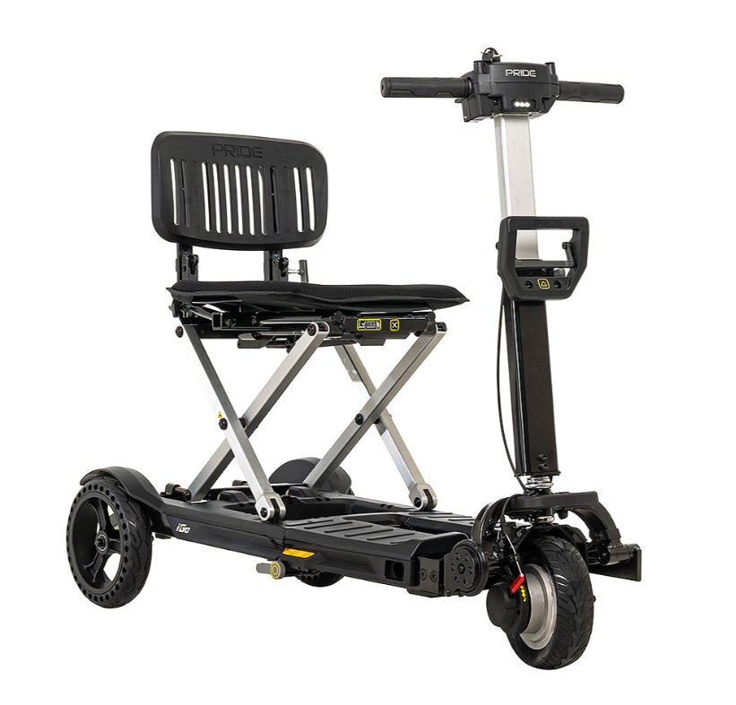 The i-Go™ Folding Scooter is the latest super portable mobility device by Pride Mobility and will open your world to new experiences. It folds down for easy stowing, disassembles into two pieces that weigh just 32 pounds each and is one of the most portable, travel-friendly devices that provides all-day power and mobility.