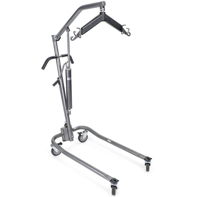Our Standard Hydraulic Patient Hoyer Lift provides a safe and easy transfer with its durable steel frame and hydraulic mechanism. Our Hydraulic Lift features a 6-point swivel bar, allowing you to attach 2 or 4 sling straps and 2 chain connections for convenient transfers.